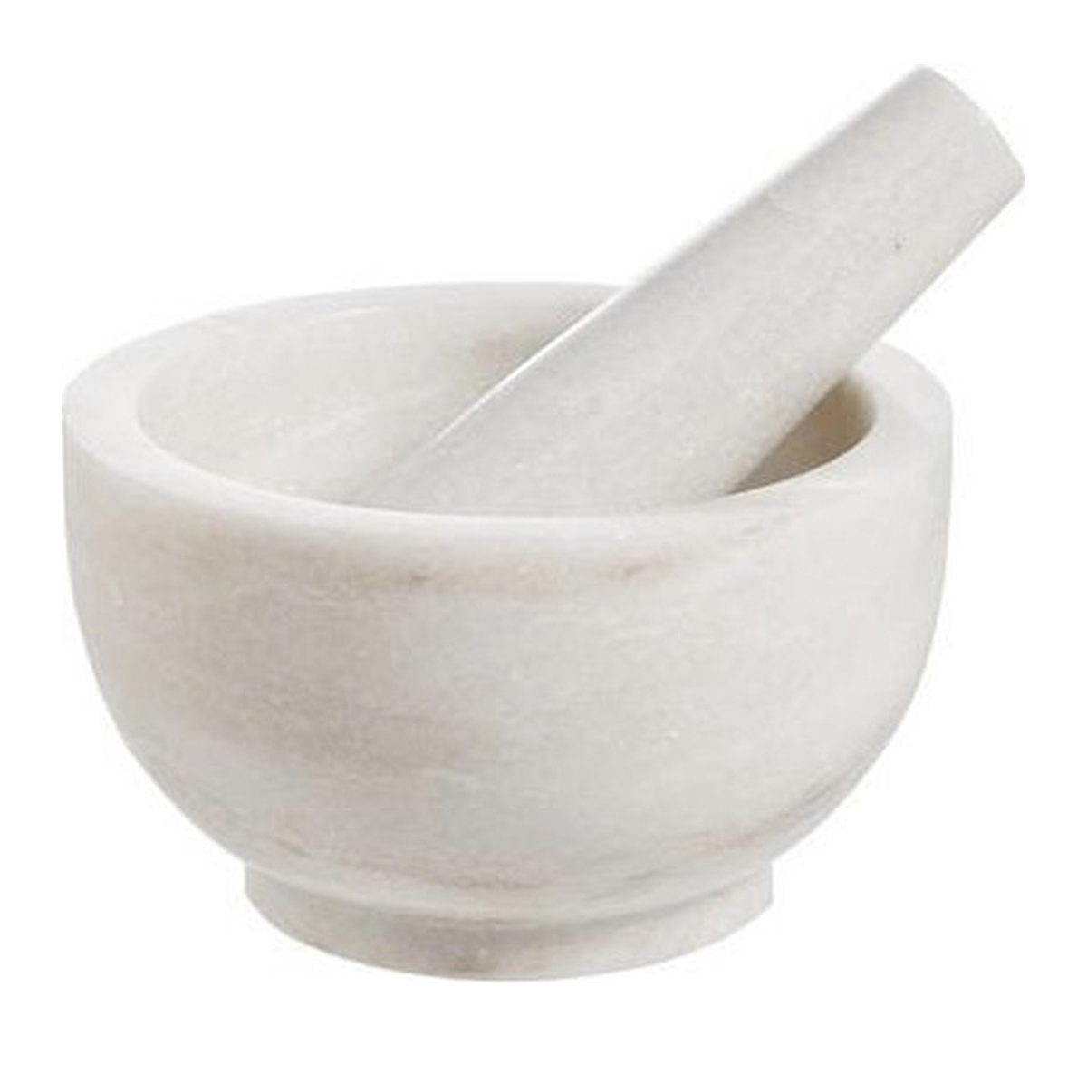 > Marmeren vijzel met stamper, € 33,50 via bol.com