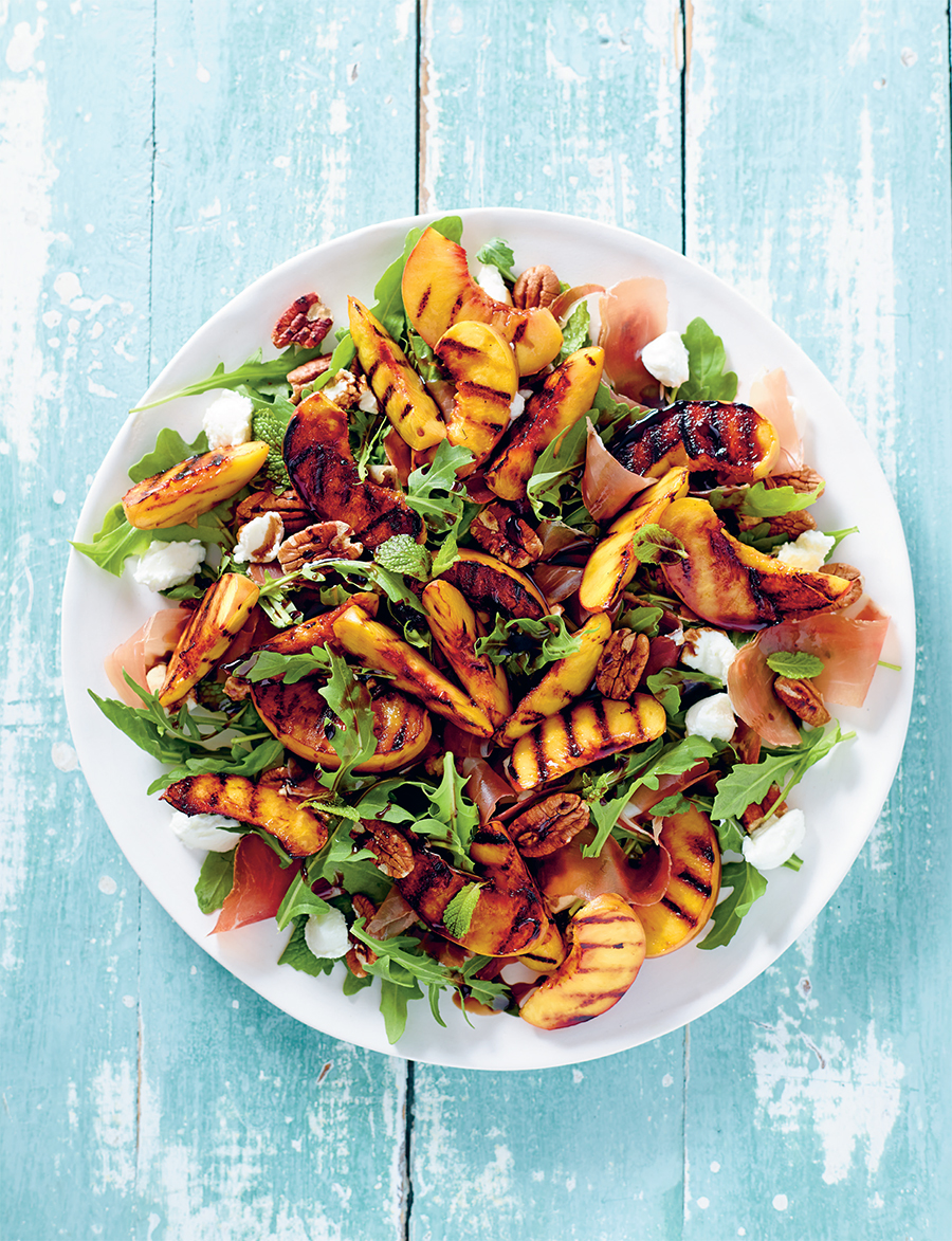 Wat dacht je bijvoorbeeld van deze salade met geroosterde perzik, pecannoten en prosciutto? Die maakt ook mooi gebruik van de volgende tips in dit lijstje.