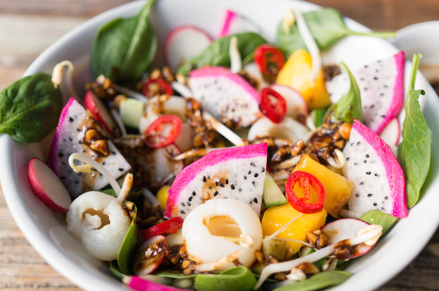 Eerder maakten we bijvoorbeeld roedjak, een hartige Indonesische fruitsalade met spinazie en een pittige dressing van palmsuiker, chilipepers en pinda’s. En wat dacht je van deze hartige Aziatische meloensalade met munt en pinda’s? Yum!