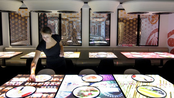 Het Aziatische restaurant Inamo in Londen brengt uit eten gaan naar een ander niveau door een compleet nieuwe beleving toe te voegen. In plaats van menukaarten op papier of in een mapje worden deze op de tafel geprojecteerd door een enorme beamer. Op deze manier hoef je nooit meer eindeloos te zwaaien naar de obers en kan je continu genieten van de fijne avond.