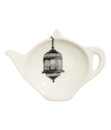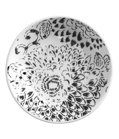 Leuk voor naast je theeglas: een schaaltje met bloemetjes in zwart-wit. Via H&M Home voor €2,95.