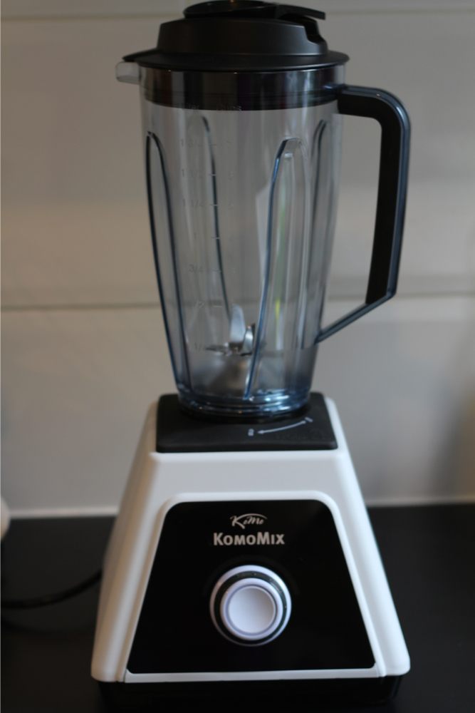 Omdat wij bij alle bekende sapjesbars en restaurants altijd de Amerikaanse Vitamix zien staan, gingen we op zoek naar een vergelijkbaar exemplaar. De Vitamix is namelijk érg duur (€ 620,-) en niet overal goed te verkrijgen. We kwamen al gauw uit op de Komomix blender. Ook geen goedkope blender, maar wél ruim een paar honderd euro voordeliger en gewoon online te bestellen.