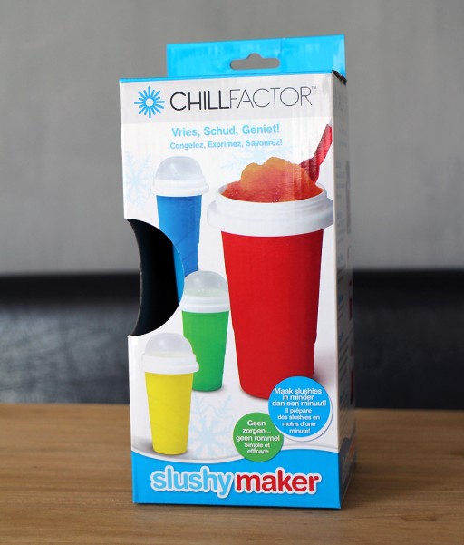 Er zijn verschillende slushy makers op de markt; bijvoorbeeld van Zoku (bekend van de ijsvormpjes), voor โฌ25,-. Daโs niet gering. Wij probeerden deย Chill Factor Slushy Maker van JML, onder andere te koop bij Blokker. JML maakt meer handige, en vaak goedkopere gadgets: van neustrimmers tot stoomapparaten.ย De slushy maker van JML kostย โฌ14,99.