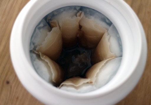 Allereerst moet de beker in de diepvries. Of althans: het koelelement. Het liefst rechtop, aldus de handleiding, maar zo hoog zijn onze diepvrieslades helaas niet. Plat dan maar. In de handleiding staan verschillende aanduidingen voor hoe lang dat moet: โeen geruime tijdโ, daarna โ4 tot 6 uurโ en daarna โtot het is bevrorenโ.ย Ruim 5 uur later halen we de beker met het element uit de vriezer; helaas nog lang niet koud genoeg. Het element los invriezen wordt poging twee.
