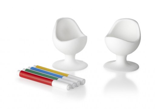 Eitjes verven terwijl ze lekker in een siliconen stoeltje liggen te rusten. Klinkt gek, maar is écht mogelijk! Koop de set met twee dopjes en vier stiften online hier voor €13,50.