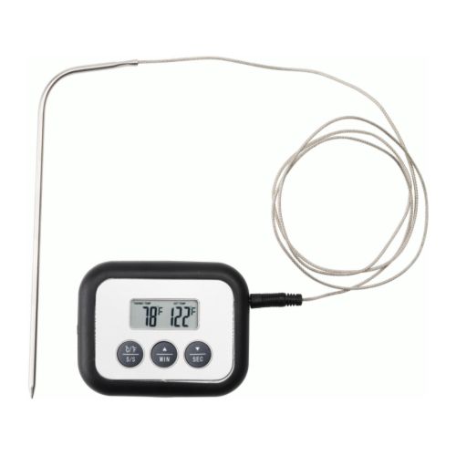 1. We hebben tientallen bakthermometers gehad en getest door de jaren heen, maar dit blijft toch de allerbeste. En hij is van IKEA. En kost maar โฌ 8,99. Deย FANTAST bakthermometer heeft alles wat je nodig hebt: een pin om in een gerecht te steken en een lang genoeg snoer zodat je โm buiten de oven kunt hangen en de deur dicht kunt doen. En de allerbesteย feature: hij heeftย een timer, zodat hij een belletje geeft zodra een bepaalde temperatuur is bereikt. Dat hebben we bij menig thermometer van meer dan 50 euro niet gezien.