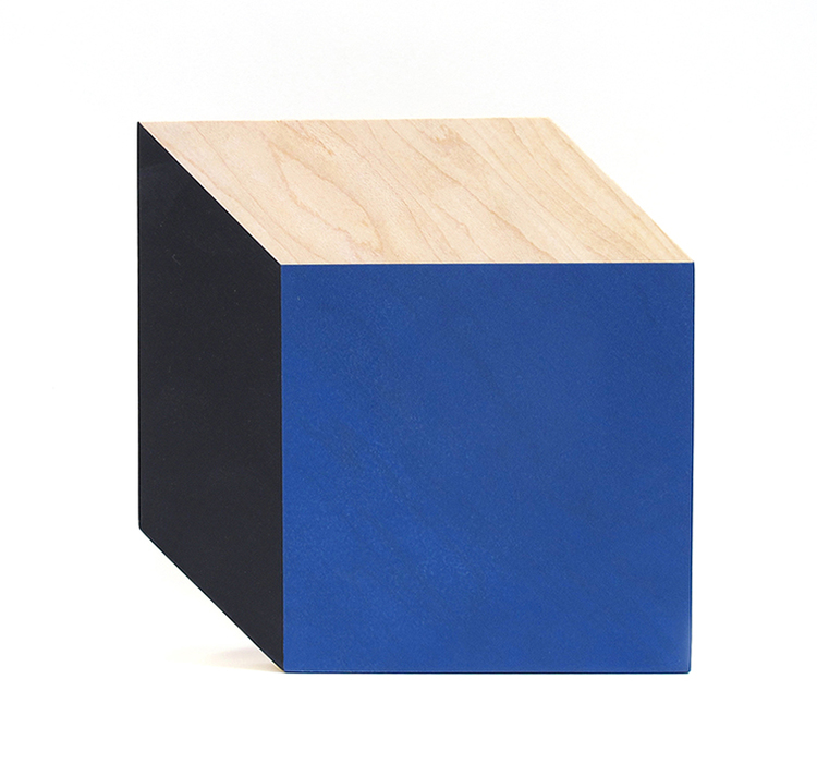 De ene kant van de plank is gewoon egaal, maar de andere kant is dusdanig beschilderd dat het lijkt alsof de plank een driedimensionale vorm heeft.