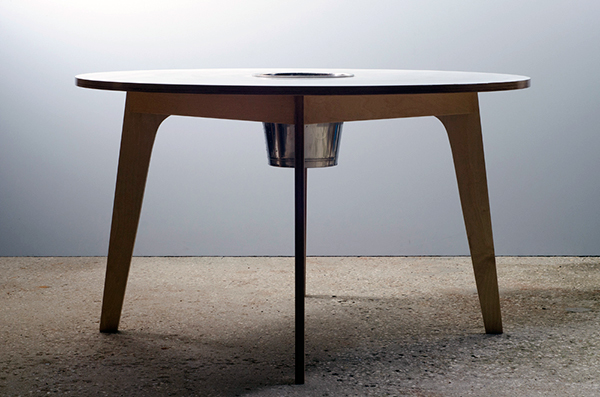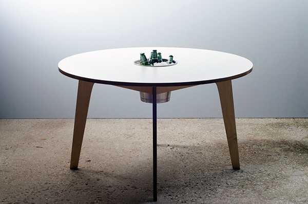 Het ontwerp van designerย Miguel Mestreย heetย The Dine en werd gemaakt voor het merkย Madeiguincho. De tafel heeft een doorsnee van 150 cm en is 75 cm hoog, gemaakt van triplex met een RVS-wijnkoeler.