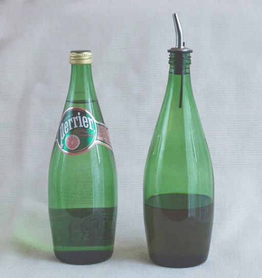 Ga vervolgens op zoek naar fijne flesjes waar deze tuit in past. Perrier buikflesjes bijvoorbeeld, of een vaasje met smalle hals.