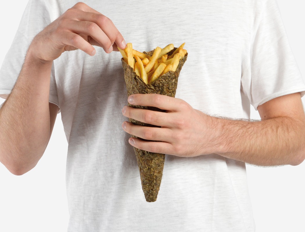De Italiaanse ontwerpers Simone Caronni, Paolo Stefano Gentile en Pietro Gaeli hebben een frietzak ontwikkeld die papier overbodig maakt. De nieuwe verpakking voor frietjes, ‘Peel Saver’ genaamd, is gemaakt van gerecyclede aardappelschil. Zo gebruik je pas écht de hele aardappel voor een zak friet.