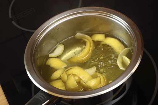 – Breng een pan met water aan de kook en doe hier wat schijfjes citroen/sinaasappel, kaneel en vanille in. Hetzelfde kun je doen door wat azijn aan de kook te brengen met citroenpartjes erin.