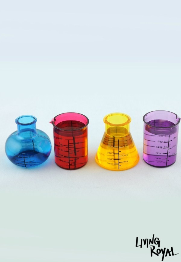 Voel je een wetenschapper door je shotjes te drinken uit deze kekke shotglaasjes. Ze komen in een set van 4 voor slechts $15 dollar en zijn verkrijgbaar bij LivingRoyal.