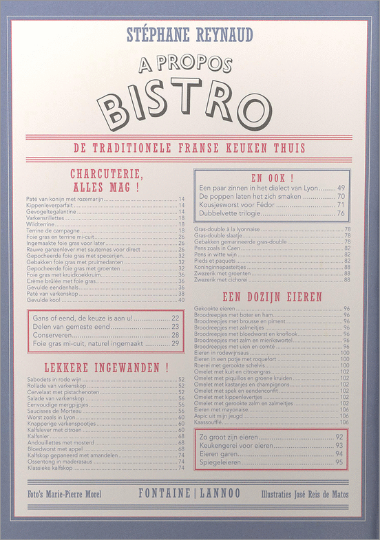 Een boek om van te watertanden, dat is A Propos Bistro van Stéphane Reynaud. De Fransman die opgroeide met een opa als slager neemt vlees serieus, iets wat duidelijk te merken is in zijn kookboeken. Boeken over terrines, patés en gebraden passeerden de revue, maar ook het boek A Propos Bistro is er éen vol wetenswaardigheden, recepten en tips over onder ade perfecte bereiding van vlees.
