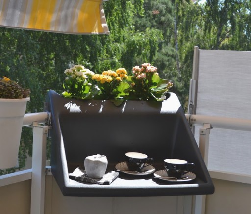 Het tafeltje heet balKonzept en is ontworpen door Michael Hilgers. Super handig, en al helemaal in combinatie met deze leuke barbecue voor aan je balkon.