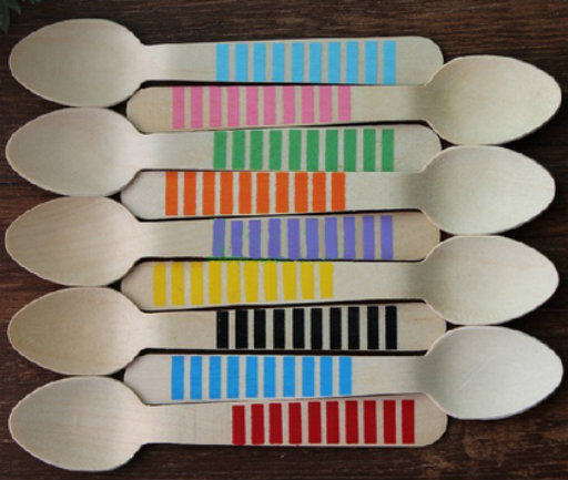 10. Gestreepte houten lepels. Aliexpress €0.20 per stuk.