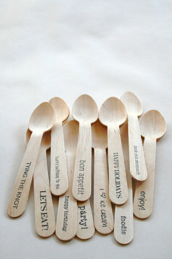 1. Houten lepels met leuke tekstjes. Etsy €13,29 voor 80 stuks plus €4,88 verzendkosten.