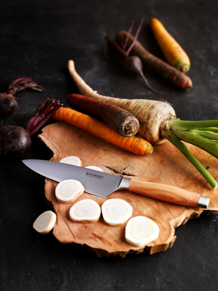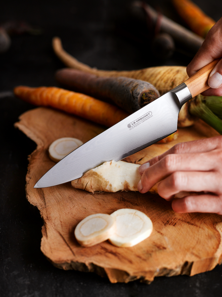 Na veel vragen of ze niet ook eens ‘in de messen’ konden duiken, vond Le Creuset een fabrikant in het Duitse Solingen, een plaats die wordt beschouwd als het hart van de messenproductie in Europa.