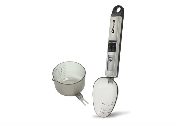 De lepel heeft een tarra-functie en meet in ounces, grammen, cups en milliliters. Wat het ideaal maakt is dat er 2 opzetstukjes zijn, de traditionele lepelvorm en de bekende โcupโ. Ontwikkeld door het handige Amerikaanse merk Sharper Image en gelukkig ook online verkrijgbaar via hun website voor $39,99 (inclusief batterijen), een investering die het dubbel en dwars waard is!