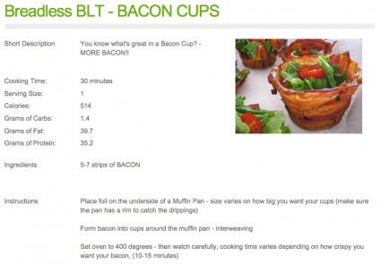 Je vult bijvoorbeeld bacon, melk, eieren en honing in. Krijg je dit: