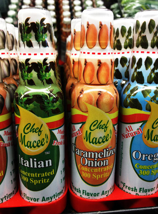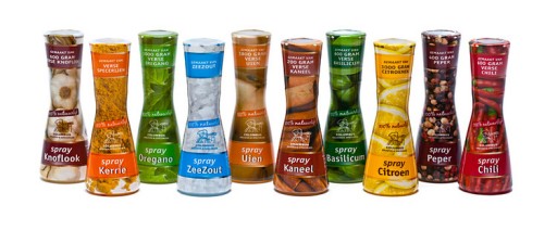 In Nederland zagen wij bijvoorbeeld deze kruiden in zonnebloemolie van het merk Columbus. Je kunt kiezen uit knoflook, chili en peper. De sprays hoeven niet koel bewaard te worden en blijven lang goed. Met één flesje kun je 300 keer je gerecht kruiden (het ligt er natuurlijk wel aan hoe veel je gebruikt)