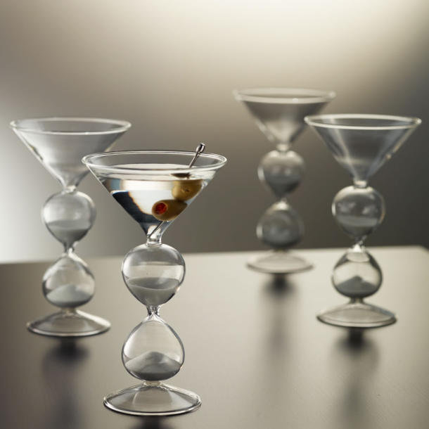 Deze glazen met ingebouwde zandloper zijn perfect voor drankspelletjes, of gewoon omdat je ze mooi vindt. Draai het glas om en je hebt tien minuten de tijd om je drankje te drinken. Grappig!
