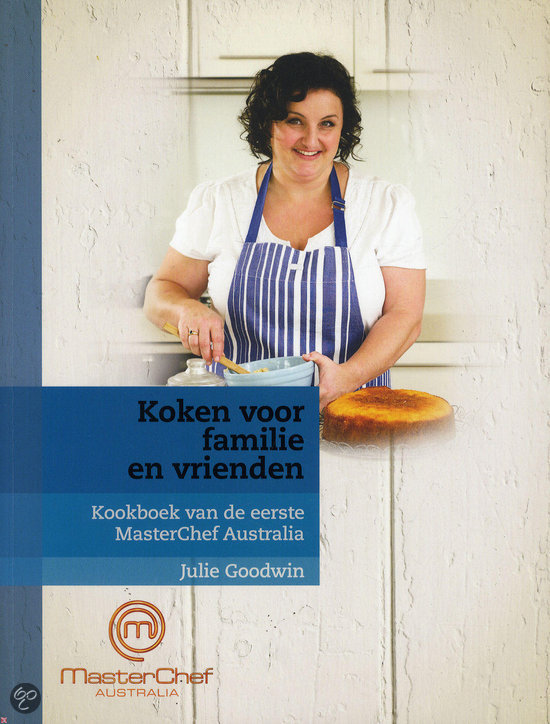 Daar is -ie dan… Het naar het Nederlands vertaalde kookboek van Julie Goodwin, de eerste winnares van Masterchef Australië. Met haar krulletjes, lieve lach en vooral oprechte liefde voor koken veroverde ze onze harten, wat is ze een schát! Koken voor haar “boys” doet ze het liefst, vandaar ook de titel “Koken voor familie en vrienden”.