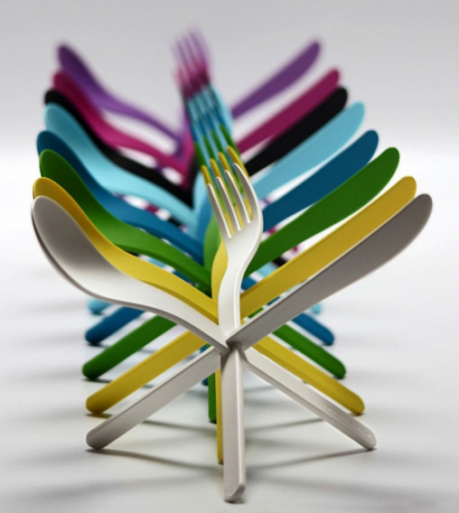 Wil je je gasten graag bezighouden tijdens een etentje? Dit bestek van het Duitse bedrijf DING3000 zorgt voor een beetje creativiteit op tafel. “The magic joining mechanism fascinates everybody. But not everybody will manage at once to transform the little sculpture into cutlery. A little skill and a good eye is necessary.”