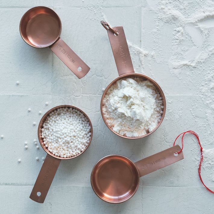 En nee, ze kosten geen fortuin zoals de veel te mooie koperen pannen van Mauviel. Voor €16,30 (exclusief verzendkosten) heb je namelijk vier schepjes in huis, in de maten 1 cup, 1/2 cup, 1/3 cup en 1/4 cup. Klik hier om ze te bestellen.