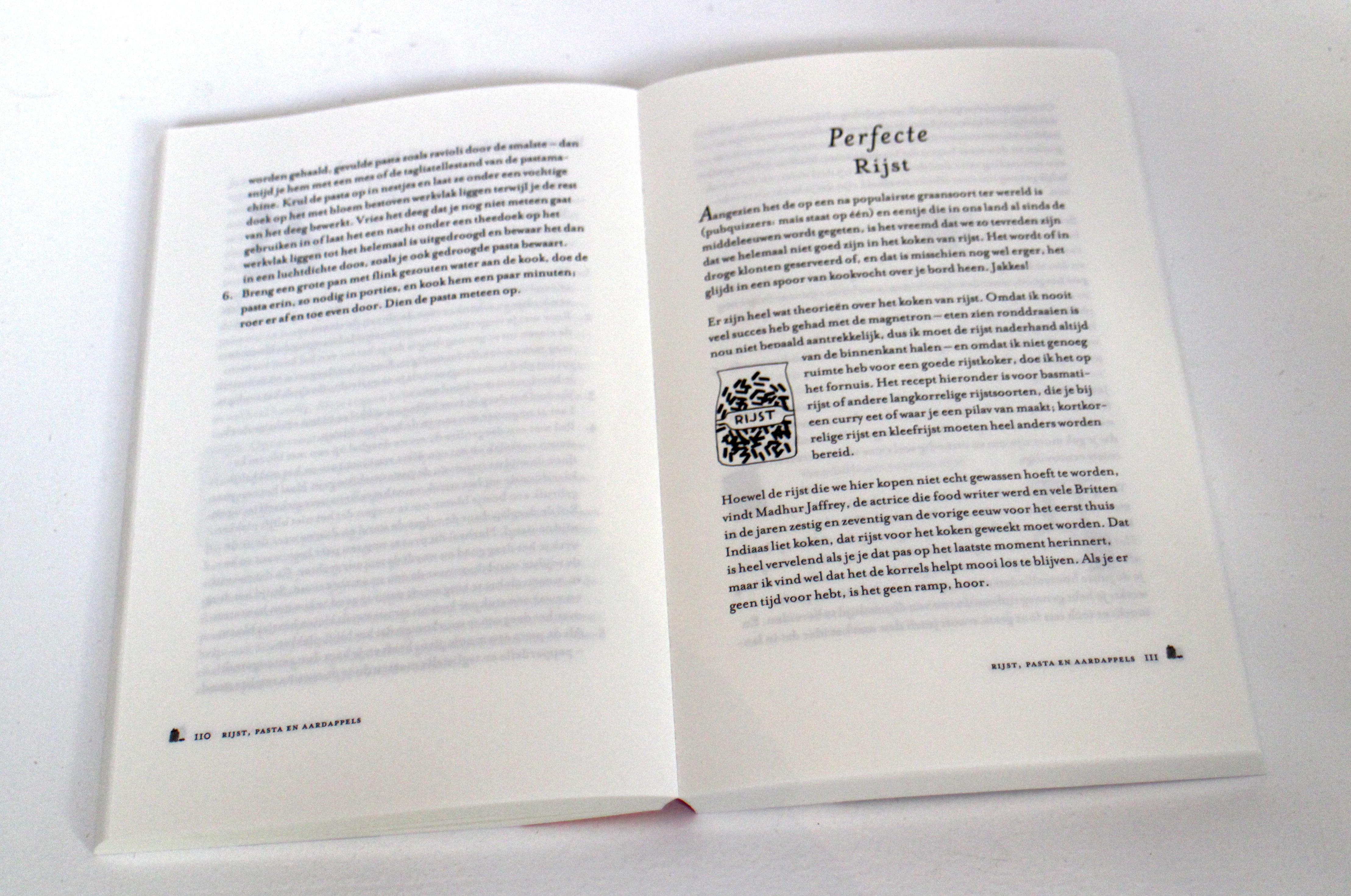 Prettig is dat ze per recept vertelt welke soorten ze heeft uitgetest, en welke wel en welke niet werkten. Haar favoriet staat vervolgens als recept volledig uitgeschreven. Daar geeft Cloake handig commentaar bij, vooral in het kader van wat haalbaar is voor thuiskoks. Fijn! Het boek is opgedeeld in zeven hoofdstukken: Eieren en kaas, Vlees en vis, Rijst, pasta en aardappels, Groenten en peulvruchten, Sauzen en Bijgerechten, Bakken en Toetjes.