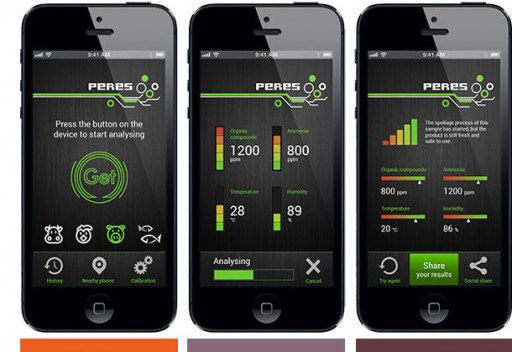 De makers van het apparaatje, dat Peres heet, noemen het een e-nose. Oftewel: een elektrische neus. Het werkt als volgt: je houdt het apparaatje dichtbij het vlees of de vis die je wilt checken. Het analyseert de versheid door middel van een luchtvochtigheidsmeter, een gasmeter en een thermometer. De resultaten worden met elkaar gecombineerd en doorgestuurd naar de app.