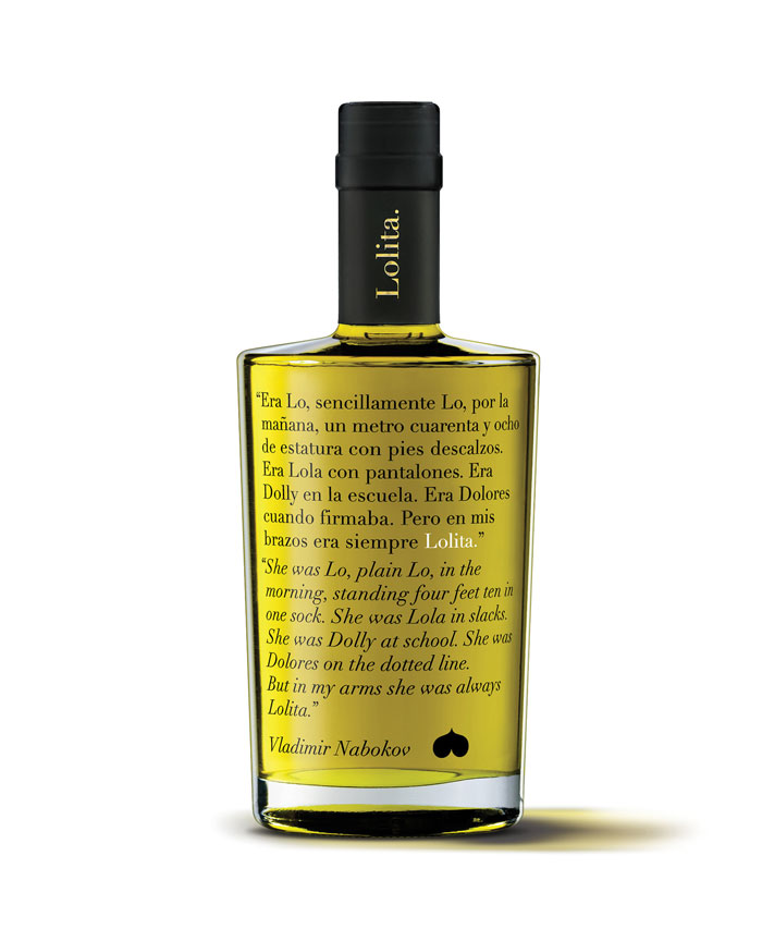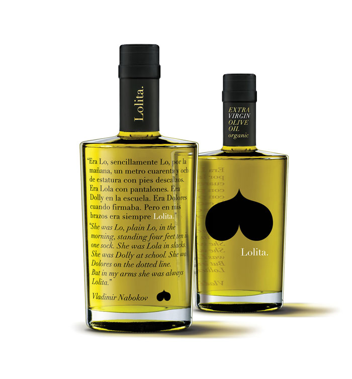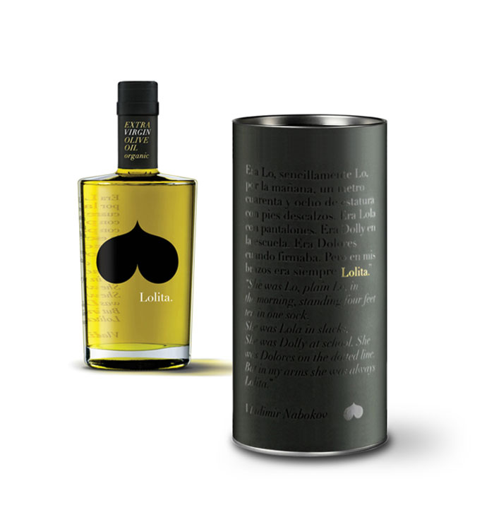 Deze waanzinnig mooie fles olijfolie voldoet hier helemaal aan. De olijfolie met de naam ‘Lolita’ is ontworpen door Sidecar. Het ontwerp is gebaseerd op het nogal geruchtmakende boek ‘Lolita’, geschreven door Vladimir Nabokov waarin een volwassen leraar verliefd wordt op een 12-jarig meisje. “The name was chosen because it contains the word Lolita OLI (Olive) and is a true virgin” aldus de makers.