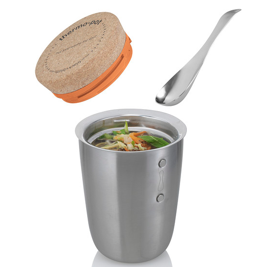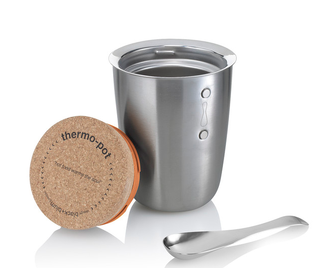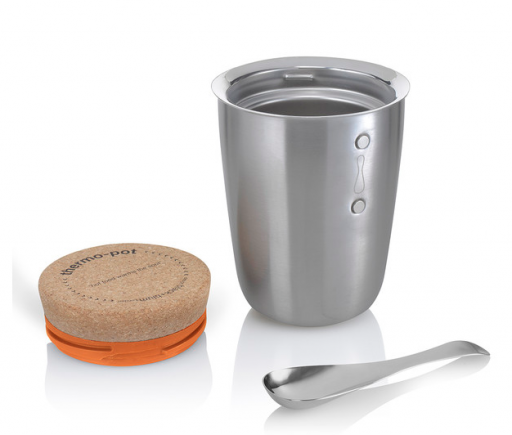 De Thermo Pot’s zijn gemaakt van roestvrij staal en hebben een kurken deksel. Ook handig: je krijgt er een prachtige lepel die als een magneetje aan het bakje kleeft.