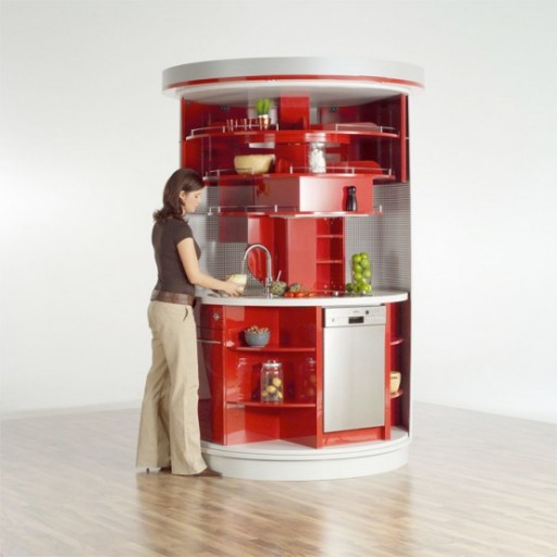 De ‘Circle Kitchen’ van Compact Concepts neemt maar 2 vierkante meter in, maar kan ronddraaien. De prijs variert van $ 6,500 tot $ 15,000, afhankelijk van alle accessoires die je erbij neemt. Niet goedkoop, dus!
