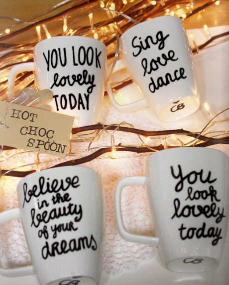 Dat kan bij Coeurblonde, een merk en gelijknamig blog, opgericht door Elle en Pip, twee nichtjes uit Amsterdam. Ze bloggen niet alleen fervent (en leuk!), maar maken ook allerlei fijne goodies: van sieraden tot woonaccessoires tot grappige kaartjes. En het allerleukste: de dames maken eigen Happy Quote Mugs, mokken met een inspirerende quote erop, en tevens handbeschreven espresso kopjes.