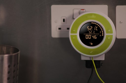 Codlo is een apparaatje dat je koppelt aan een rijstkoker of slow cooker -het systeem zit letterlijk tussen de koker en je stopcontact in. Zo hoef je niet een compleet sous vide apparaat aan te schaffen.