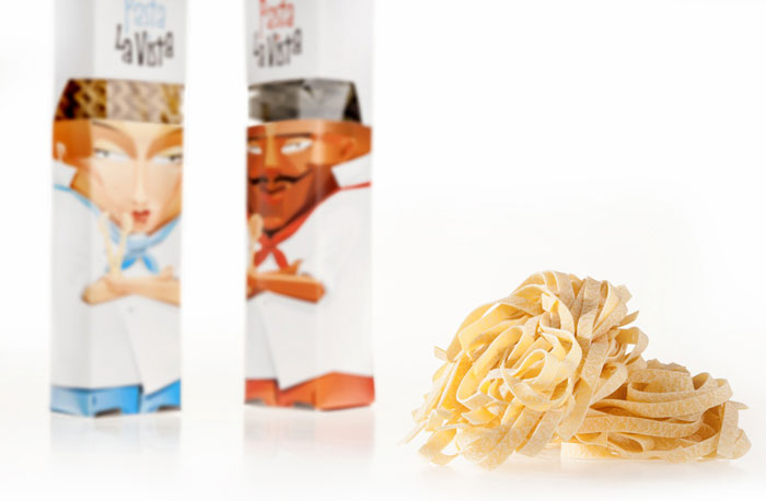 Op de fijne website TheDieline vonden we deze super leuke pastaverpakkingen met ieder een eigen karakter. Mario, Francesco, Giovanni en Francesca zijn geïnspireerd op een aantal makers van de pasta en vertegenwoordigen ieder een andere soort pasta.