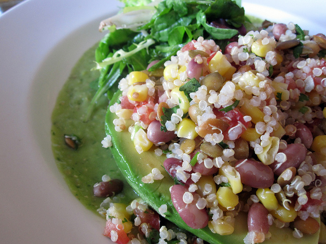 4. Ga voor een vega optie: een gezonde quinoasalade met bonen.