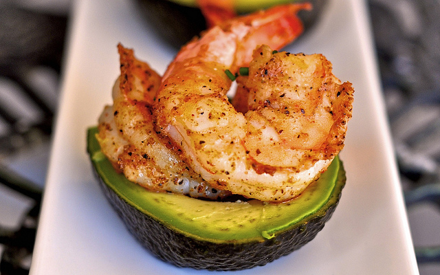 3. Gegrilde garnalen, zeker als je ze van tevoren (pittig) marineert, zijn tof om te serveren in een gehalveerde avocado.