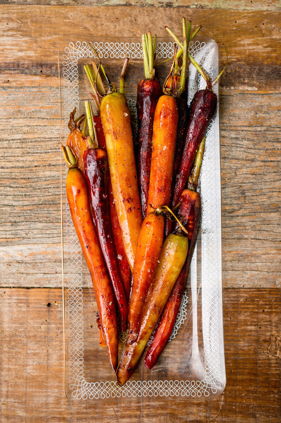 Deze combinatie werkt altijd: wortels met sinaasappel en honing. Gebruik regenboogwortels voor een kerstig tintje.