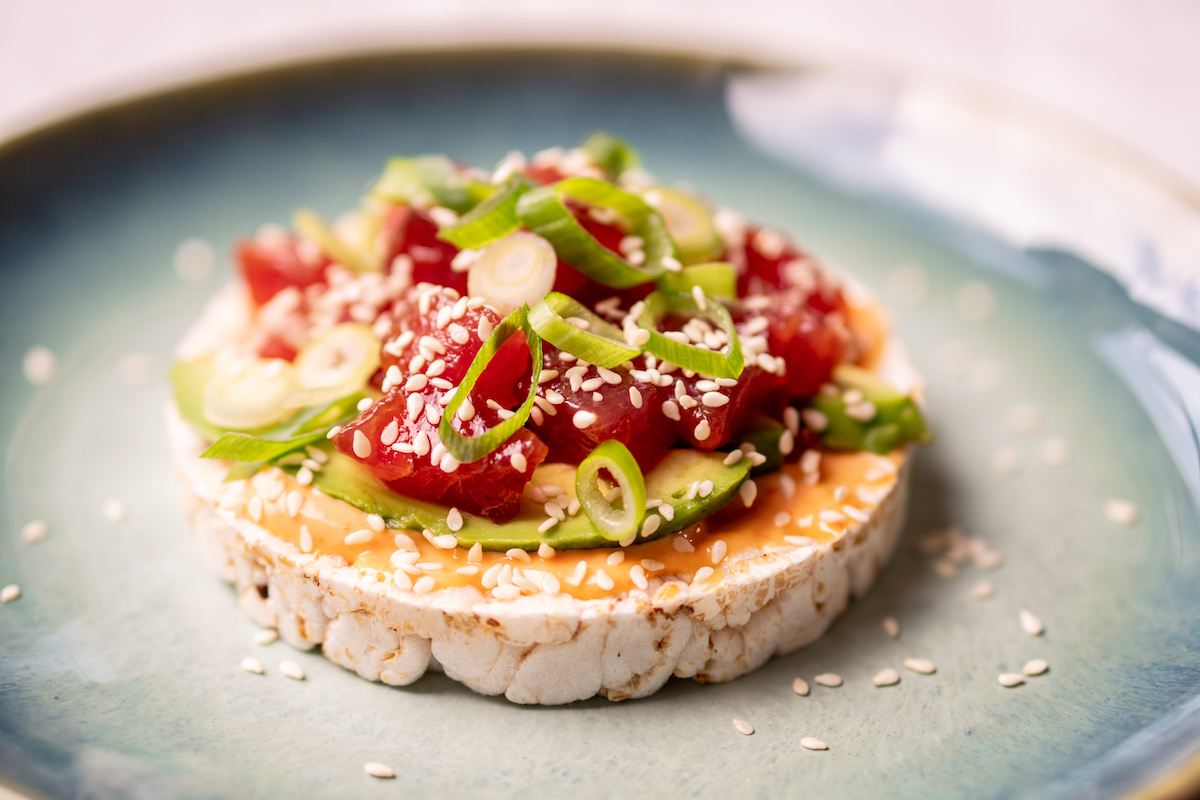 - Poké rijstwafels met verse tonijn en srirachamayonaise