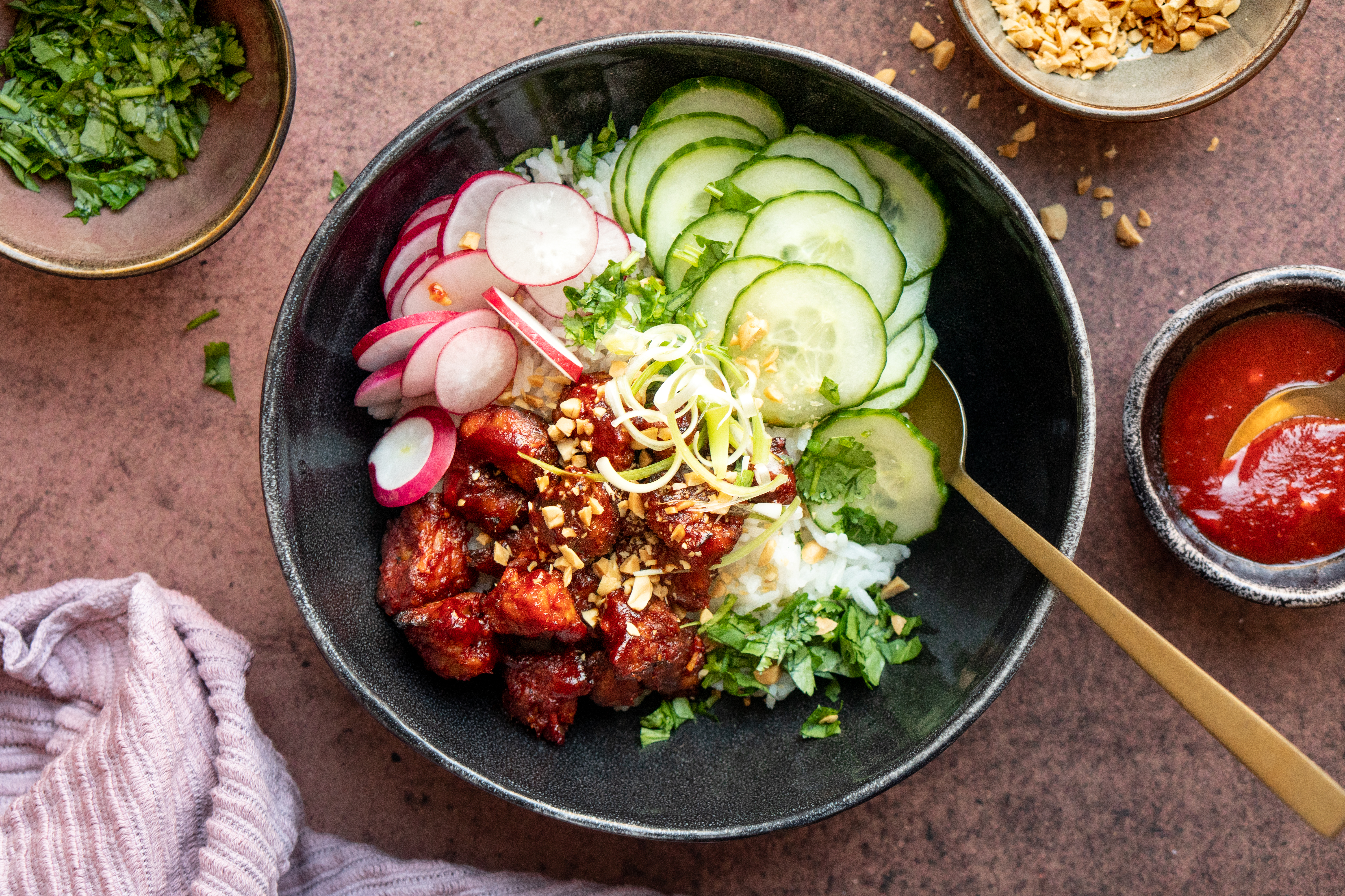 3. Rijstbowl met krokante tempeh in gochujang