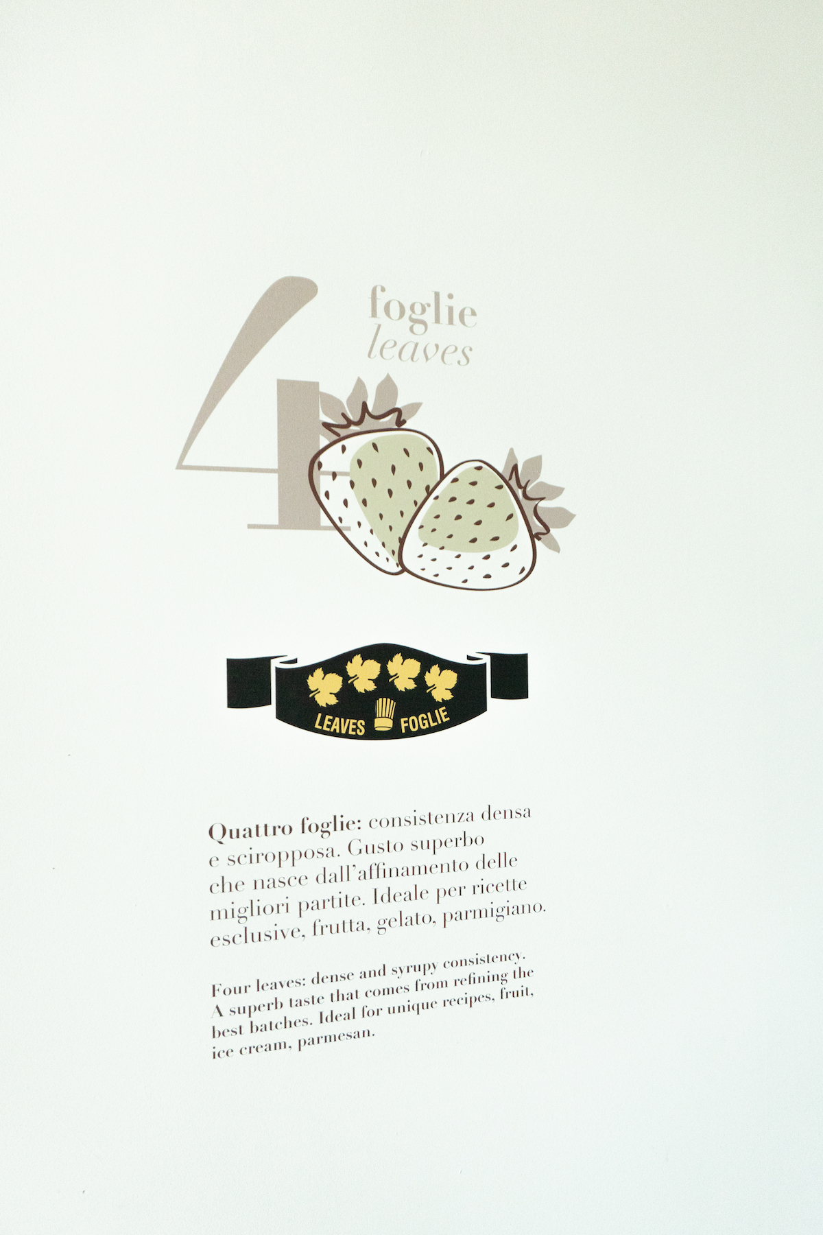Als je goed kijkt, zie je dat er op flesjes balsamico linksboven een aantal blaadjes staat afgebeeld. Ook die zijn een keurmerk. Vier blaadjes geven aan dat de kwaliteit het hoogst is (binnenkort wordt het keurmerk nog uitgebreid tot 5 blaadjes).