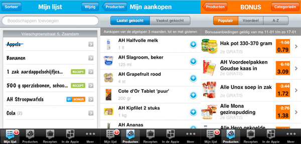 De fijne app van Albert Heijn, Appie genaamd, heeft een superhandig systeem ontwikkeld. Kies het filiaal waar je heen gaat en voer je boodschappenlijstje in, Appie zal je door de winkel leiden alsof het je eigen broekzak is. Helaas is het alleen maar handig voor Albert Heijn. Wel onthoudt Appie je meest gekochte artikelen wat het maken van een boodschappenlijstje, voor welke winkel ook, een stuk makkelijker maakt.