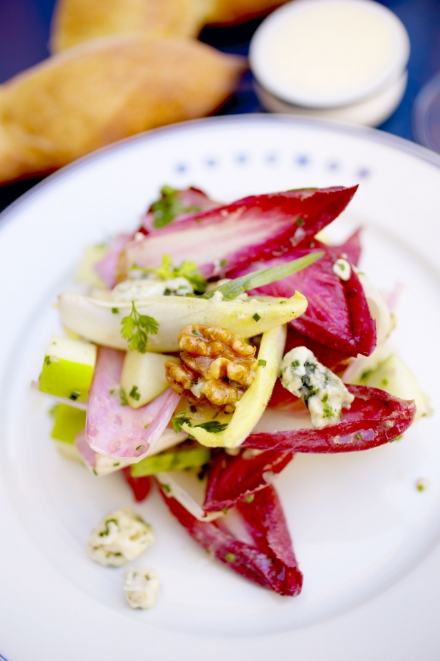 De bittere smaak van witlof en radicchio leent zich ook uitstekend voor een herfstige salade. Wij zijn obsessed met deze salade van radicchio met – ja, je leest het goed – manchego vinaigrette.