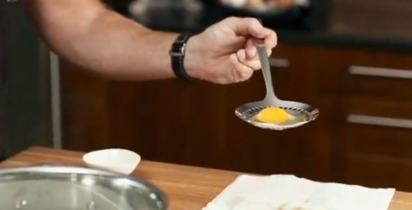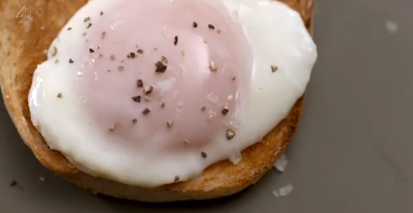 Eitjes pocheren moeilijk? Echt niet. Heston’s truc: doe een bord in de kookpan zodat het ei niet direct in het kokende water zit. Gebruik superverse eieren. Breek het ei op een schuimspaan (met fijne gaatjes) zodat het echte natte eiwit wegloopt. Check het kokende water met een kookthermometer; het water moet 80 graden zijn. Laat wat er nog op de schuimspaan ligt (het stevigere eiwit en uiteraard de dooier) langzaam in het kokende water zakken. Precies 6 minuutjes pocheren en klaar ben je!