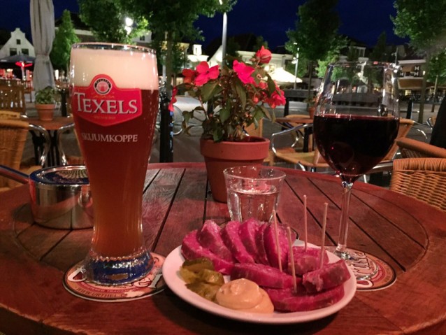 “We zouden het niet zo gek maken, vandaag”, dus ik reken netjes om 22.00 af met het idee thuis nog een flesje open te trekken en een filmpje te kijken. Mislukt, want onderweg naar de fiets komen we langs het volgende gezellige tentje, een bierlokaal, en drinken we daar nog meer wijn en bier en eten we gerookte ossenworst van Louman. Heerlijk zo samen, maar ik kom er later op de avond pas achter dat ik de hele dag misschien niet echt genoeg had gegeten en wel genoeg wijn had gedronken. Poeh.