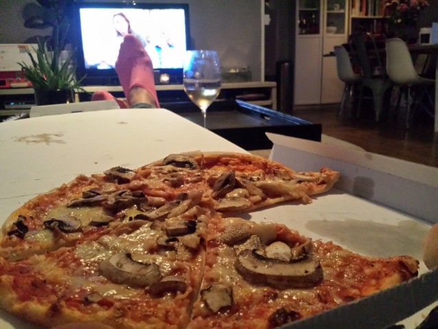’s Middags voer ik weinig uit, behalve het huishouden en even aan m’n blog werken. Ik eet nog twee broodjes met smeerkaas en drink water en thee. Later die middag op de bank werk ik nog een halve zak Dorito’s naar binnen, die eigenlijk gereserveerd was voor m’n vriendje (sorry, kon me niet meer inhouden!). We eten weer laat, eigenlijk altijd, omdat mijn vriend Daan pas laat terug komt van zijn werk en ik meestal kook en wel graag samen wil eten.