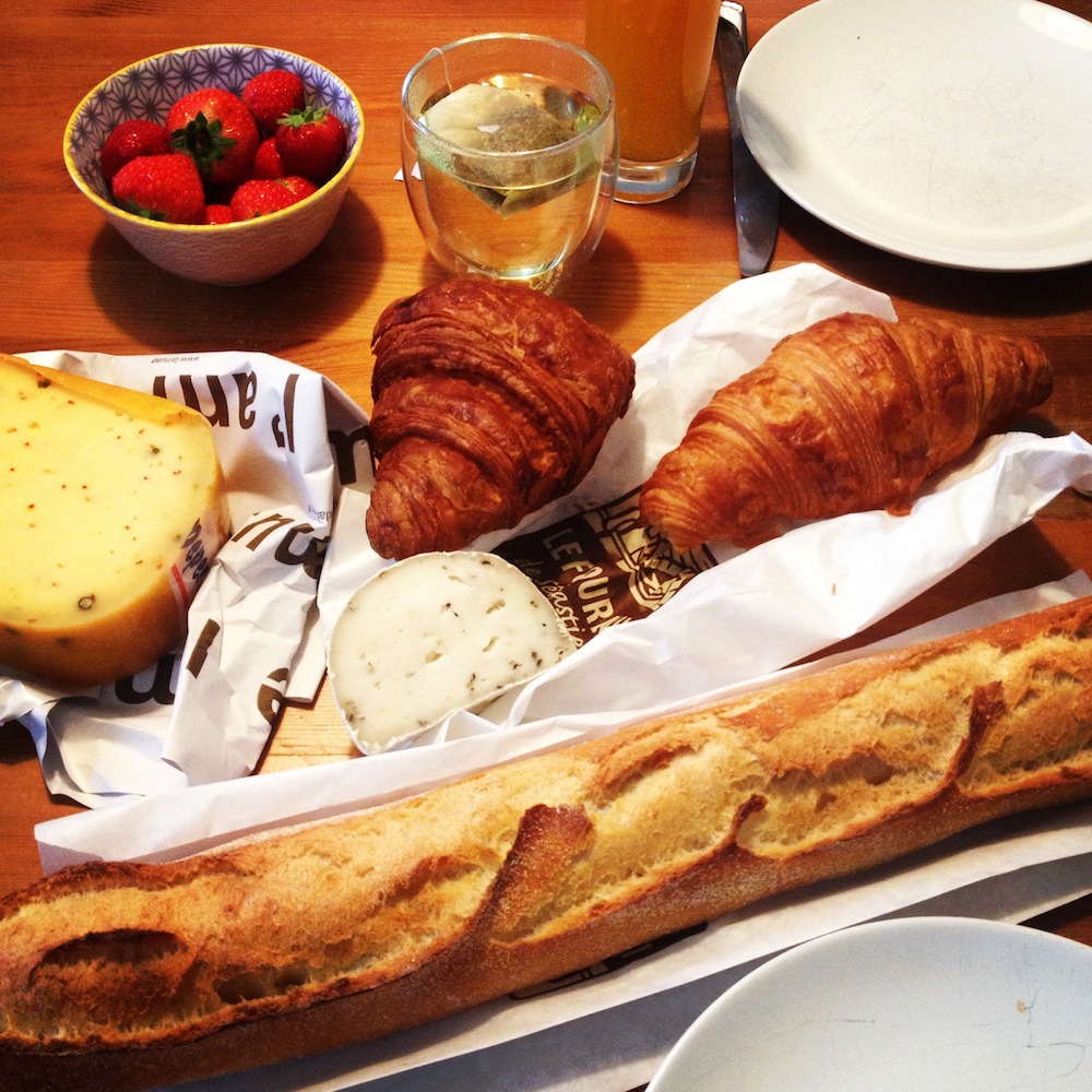 Ontbijt met heerlijk stokbrood en croissants van de Franse bakker Le Fournil. Aardbeitjes erbij en ook nog wat peperkaas van l’Amsuse. Echt een weekendontbijtje. Vervolgens de auto in op vintage meubeljacht in Rotterdam. Nadat we thuis zijn gekomen met een mooie postkist en kastje maak ik van het restje stokbrood broodjes gezond met kaas, paprika, komkommer en tomaat. Later nog een kommetje linzensoep.