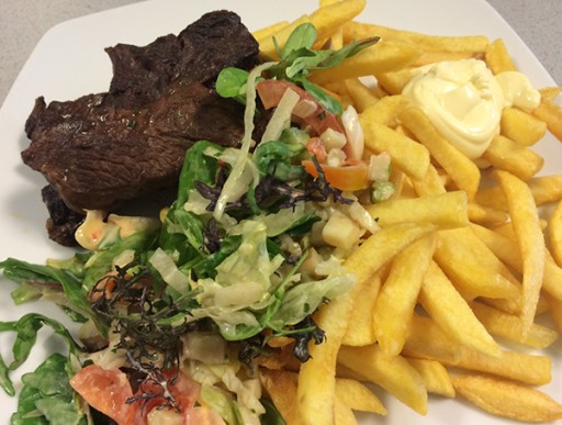 Normaliter neem ik mijn eigen eten mee wanneer ik een avonddienst draai, maar vandaag schiet dat erbij in. Ik krijg frietjes met draadjesvlees en een salade voorgeschoteld. ’s Avonds snack ik een handvol nootjes, waarna ik om kwart voor twaalf weer thuis kom.