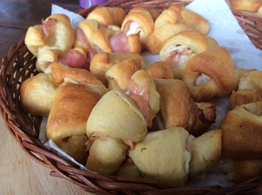 We beginnen de zondag (uitgeslapen tot half 10, wauw!) met een uitgebreid ontbijt: hartige minicroissants. Nu we eindelijk een eettafel hebben kunnen we op zondag uitgebreid ontbijten. Wat is dat toch heerlijk! In het oude huis hadden we helemaal geen eettafel en aten we altijd op de bank; toch een stuk minder fijn.